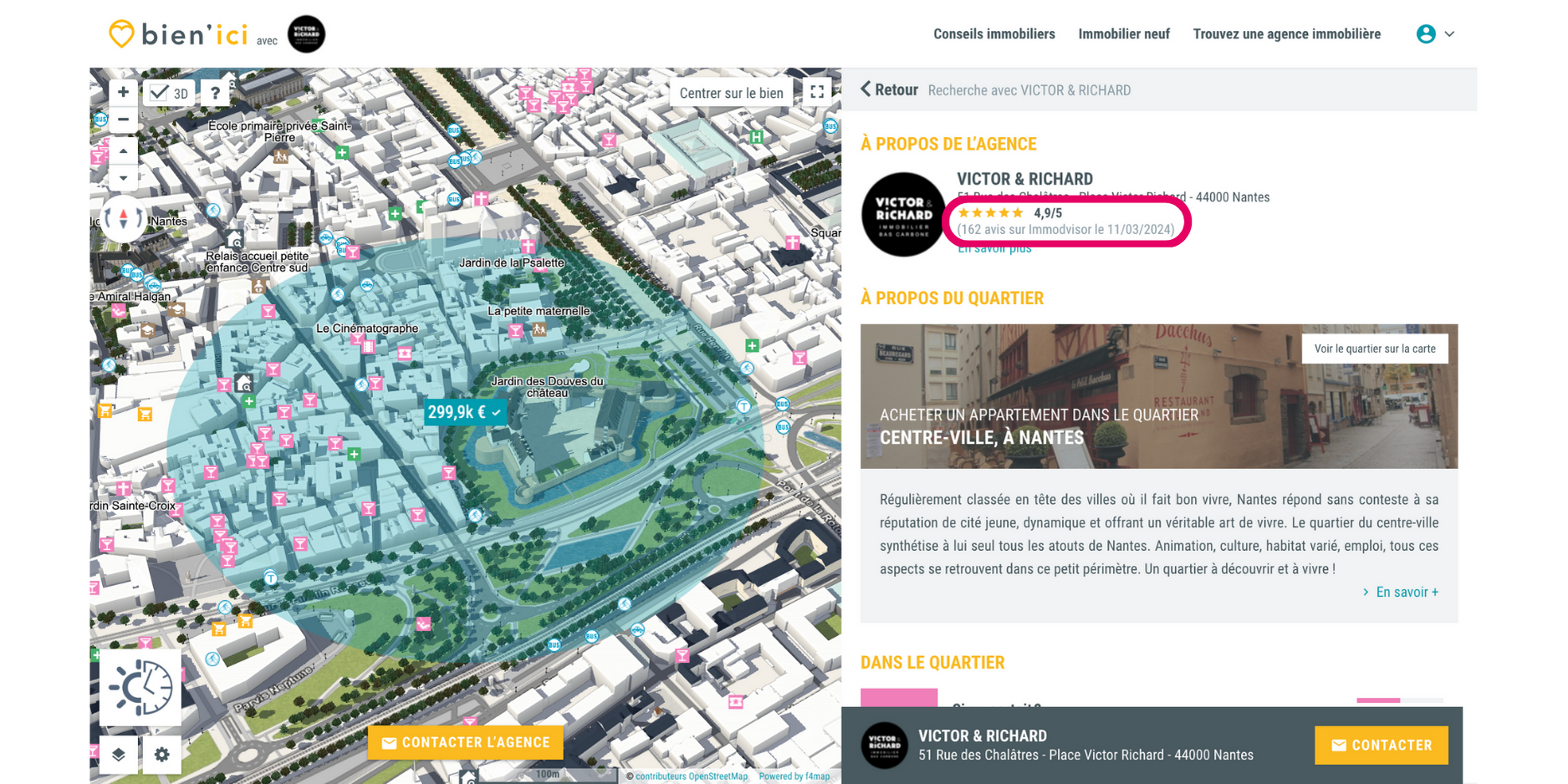 Les avis clients de l’agence immobilière Victor & Richard apparaissent sur toutes leurs annonces Bien’ici.