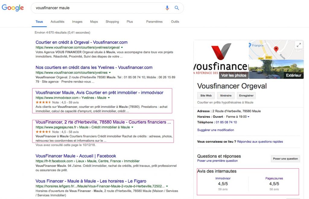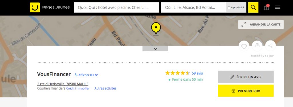 Le très bon référencement des pages entreprises Pages Jaunes renforcent la présence de nos clients sur Google, que ce soit dans les résultats naturels mais également dans les fiches Google My Business dans l’encart “avis des internautes”.