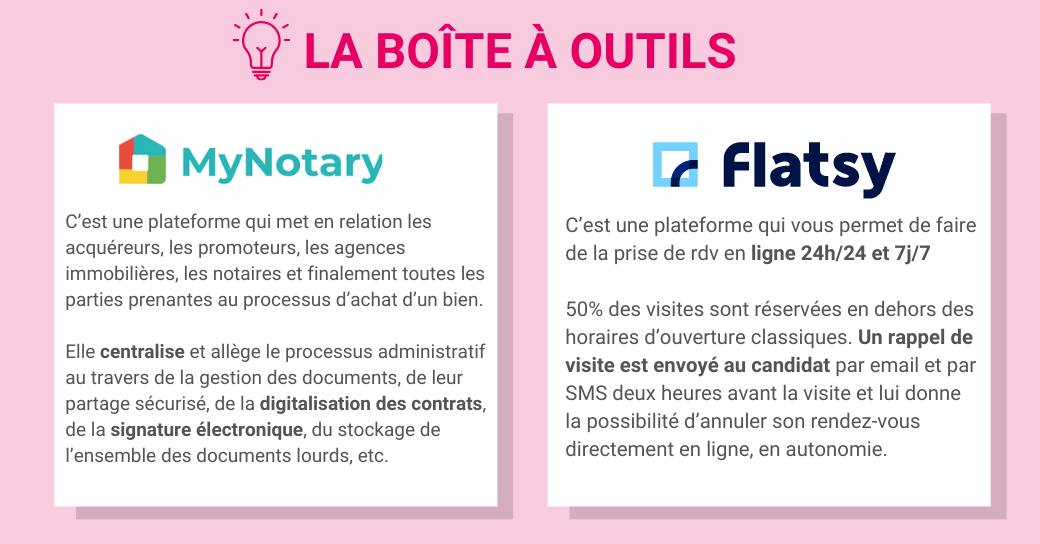 Alors facilitez-leur leur parcours d’achat immobilier en simplifiant toutes ses démarches administratives. Par exemple, guidez-le vers des outils qui réunissent tous les sujets administratifs sur une seule et même interface.