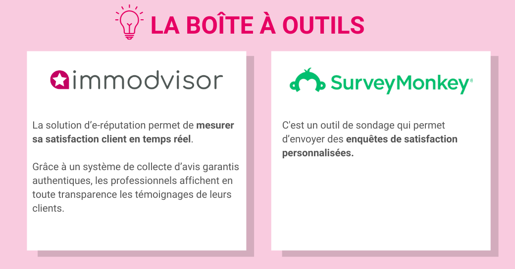 Comment ? Via des enquêtes de satisfaction, les réseaux sociaux, les interviews clients, le chat de votre site, des outils de collectes d’avis tels qu’Immodvisor, ou encore le service clients ! L’ensemble de ces canaux vont vous permettre de détecter les problèmes mais également les besoins de vos clients.