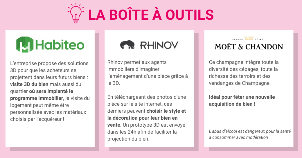 Il faut en moyenne 90 secondes pour se faire une idée sur un bien qu’on visite. Autant dire que c’est court et qu’il faut enchanter le client sur un temps très bref ! Sur une maison ou un appartement habité et meublé, c’est simple de se projeter ou non dans ce bien. Quand on visite un appartement en construction ou sur plan c’est plus difficile ! Vous pouvez soigner ce moment clé qu’est la visite, au travers de visuel 3D du bien par exemple ou encore d’un casque de réalité virtuelle qui offre une visite réelle dans le bien fini, ou encore n’oublions pas la traditionnelle maison témoin. L’expérience est magique pour le client ! L’émotion est au rendez-vous, l’expérience client est réussie !